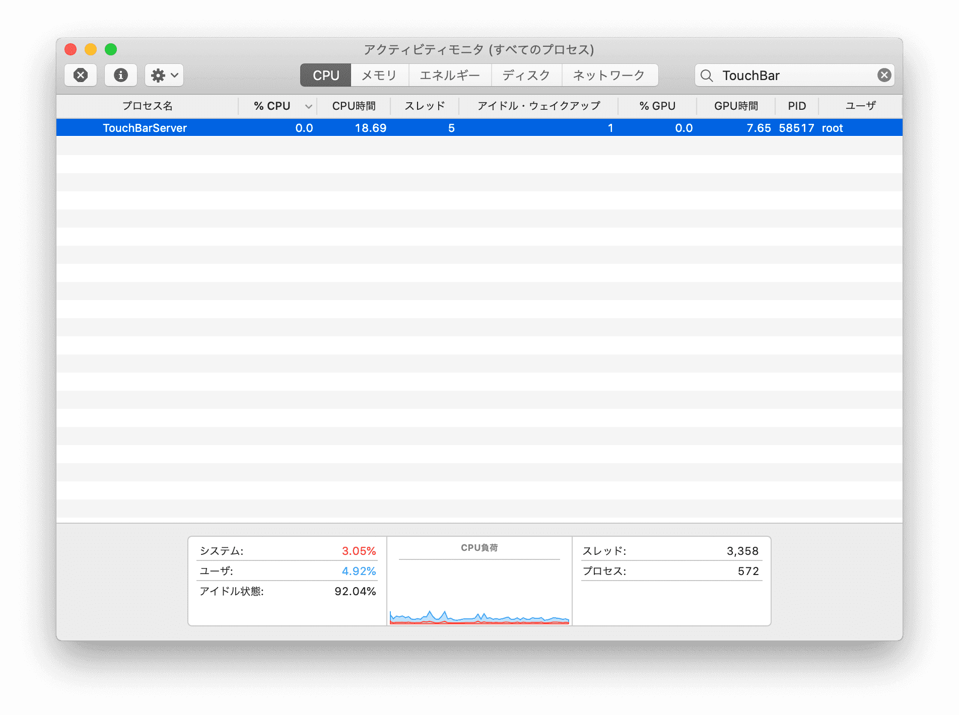 アクティビティモニタで「TouchBarServer」を終了させる。