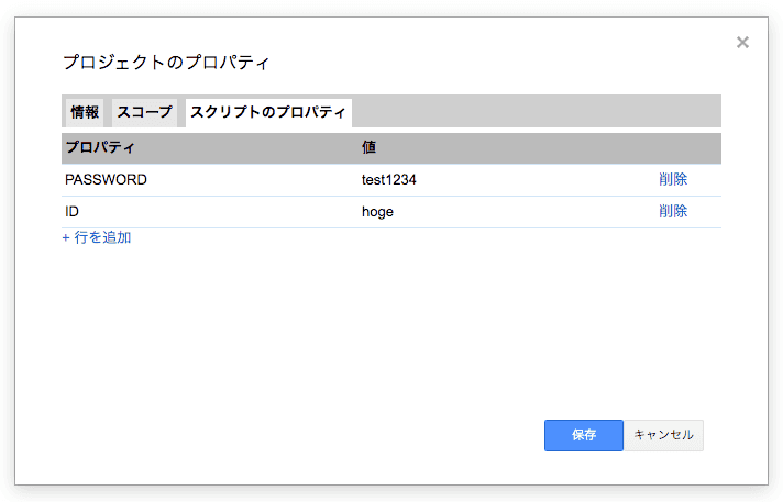 GASでパスワードやトークンなどをハードコーディングしたくなかったので、環境変数的なものに格納する方法を調べた